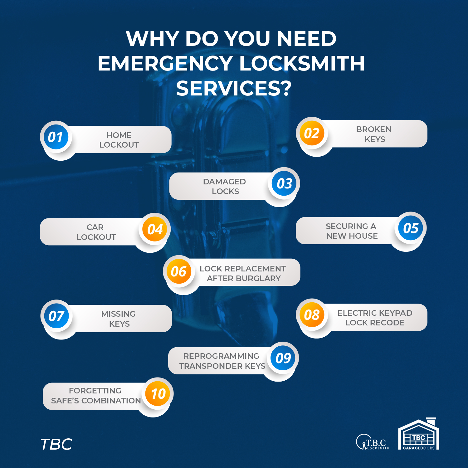 Now, if you’re searching for an emergency locksmith near me, Toronto. Then you can contact TBC Locksmith for all your emergency residential locksmith services, emergency commercial locksmith services, 24-hour emergency locksmith services, emergency automobile locksmith services, and key cutting services. We’re an affordable locksmith company in Toronto. And our team of skilled locksmiths offers top-notch solutions for car lockouts, homes, storefronts, offices, and so on.